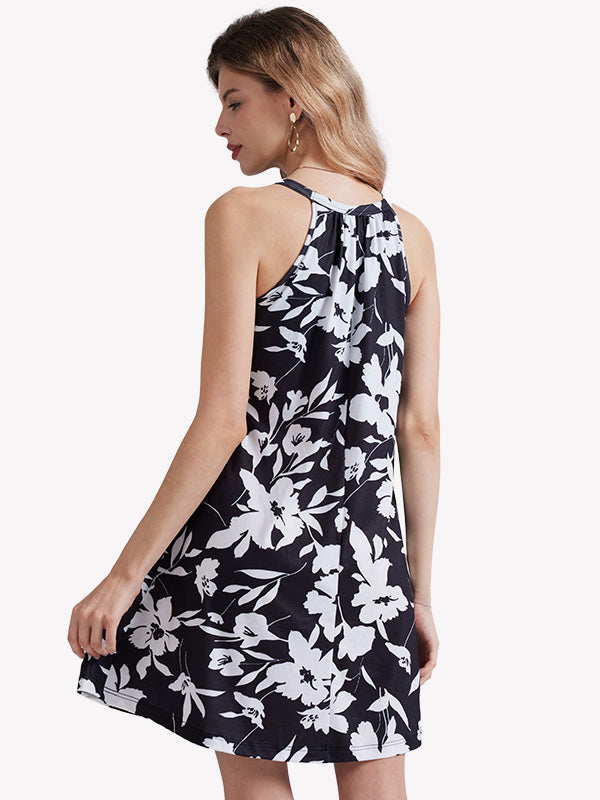 The halter neckline adds a sexy, modern touch, while the pleated neckline design offers a refined look and enhanced coverage at the bust. Finished with a flowy A-line shape, this casual summer dress flatters different body types and allows easy movement. Perfect for beach days, vacations, weddings, or everyday wear, this built-in bra sundress pairs effortlessly with sandals, heels, or accessories for versatile styling.