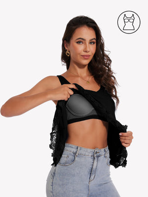 Anyfitting Women’s Wide Strap Lace Trim Tank Top with Built-In Bra