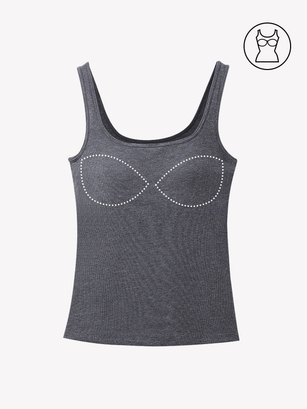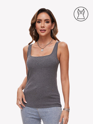 Built-In Bra Tank Top: Sewn-in, non-removable cups provide light support without a separate bra.